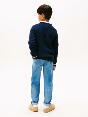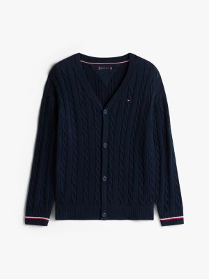 Die Schule ruft – und dieser klassische Zopfmuster-Cardigan aus reiner Baumwolle mit Tommy-Tape steht bereit.