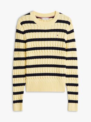 Dieser Pullover aus reiner gekämmter Baumwolle mit mittelgrobem Zopfmuster ist eine stilsichere und kuschelige Ergänzung für Lagenlooks.