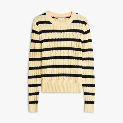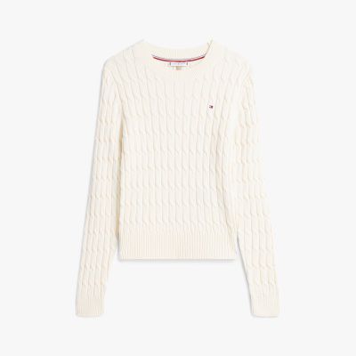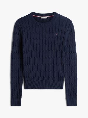 Dieser Pullover aus reiner gekämmter Baumwolle mit mittelgrobem Zopfmuster ist eine stilsichere und kuschelige Ergänzung für Lagenlooks.