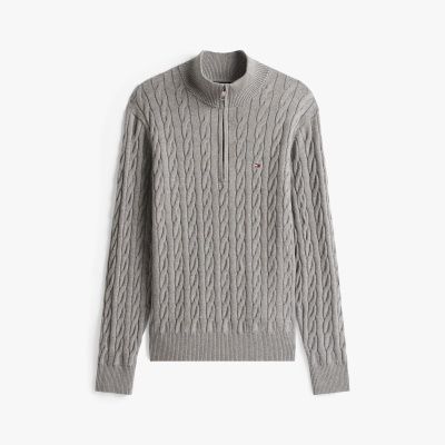 Zopfstrick-Pullover mit Halbreißverschluss