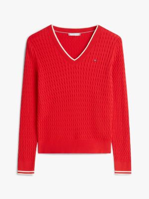 Dieser Feinstrick-Pullover aus gekämmter Baumwolle mit Zopfstrick und V-Ausschnitt ist eine leichtgewichtige Wahl für kühlere Tage.